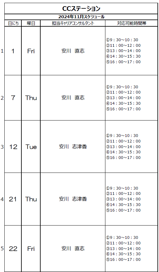 CCステーション(Zoom de 相談)┃11月スケジュール表