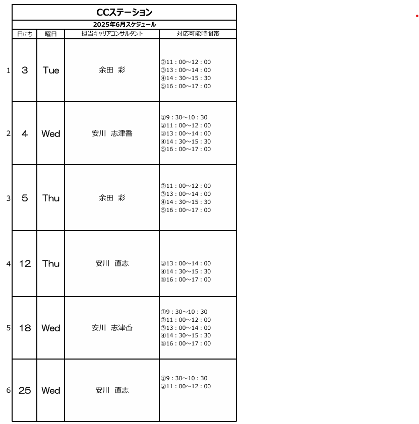 CCステーション(Zoom de 相談)┃6月スケジュール表